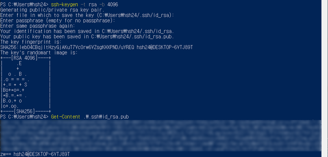 먼저 키 파일의 내용은 Get-Content .\.ssh\id_rsa.pub 이라고 입력하시면 볼 수 있습니다.